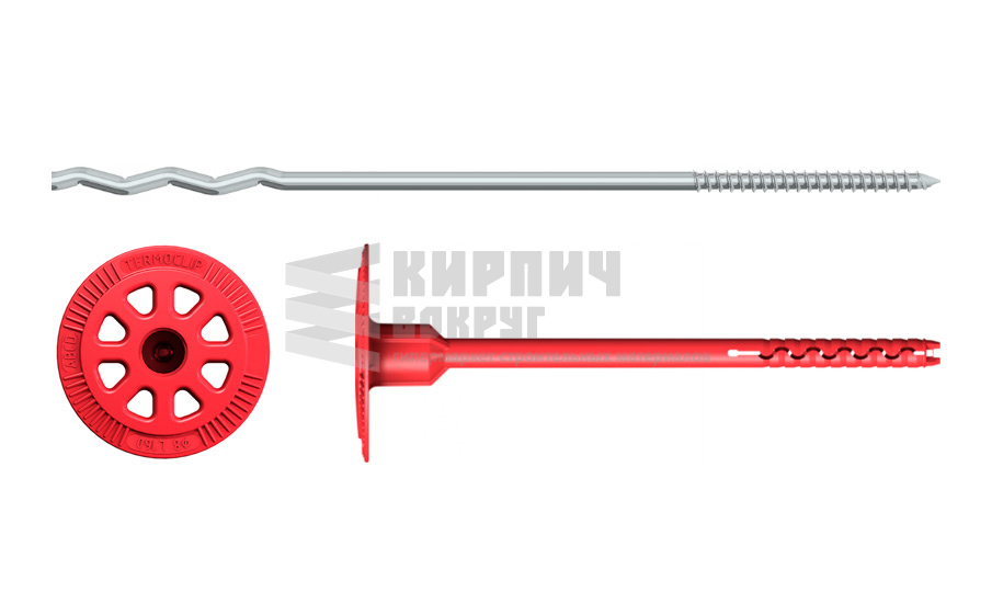 Металлическая гибкая связь TERMOCLIP МГС 5 MS состоит из распорно-связующего элемента с винтовой накаткой и тарельчатого полимерного дюбеля.